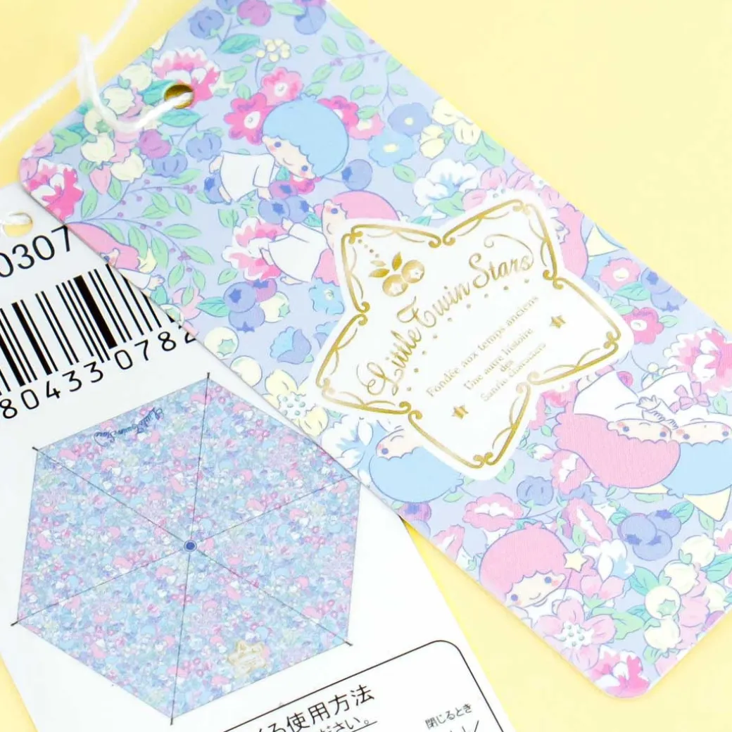 - A portable foldable umbrella featuring Little Twin Stars and floral blooms