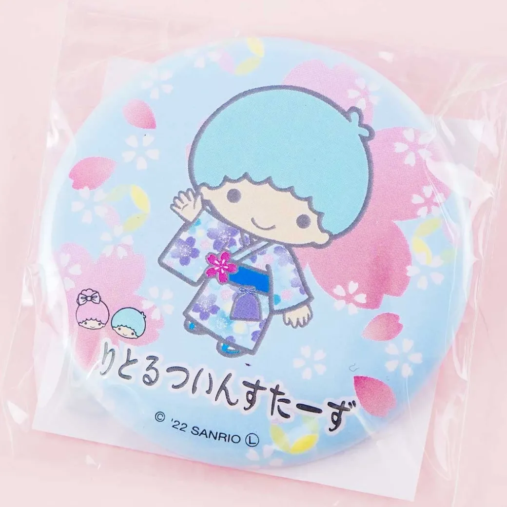 - A kawaii badge illustrated with Kiki from the Little Twin Stars wearing a sakura kimono