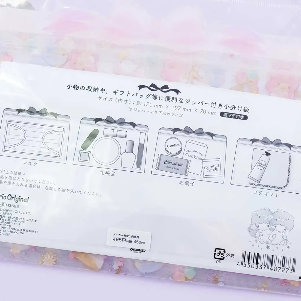 - A set of resealable storage bag featuring the Little Twin Stars and spring flowers