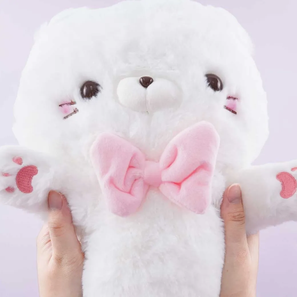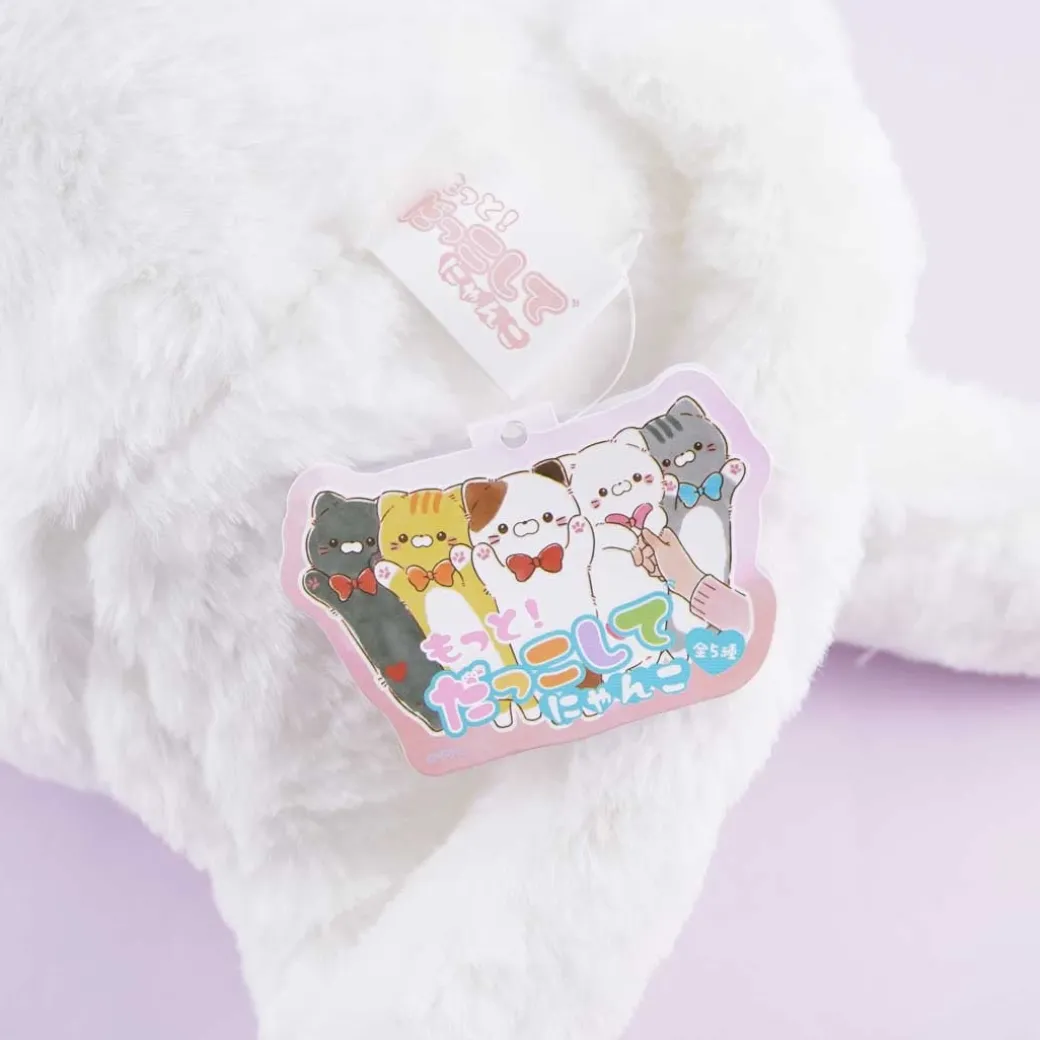 - A kawaii long and extra big white cat plushie with a heart on its belly