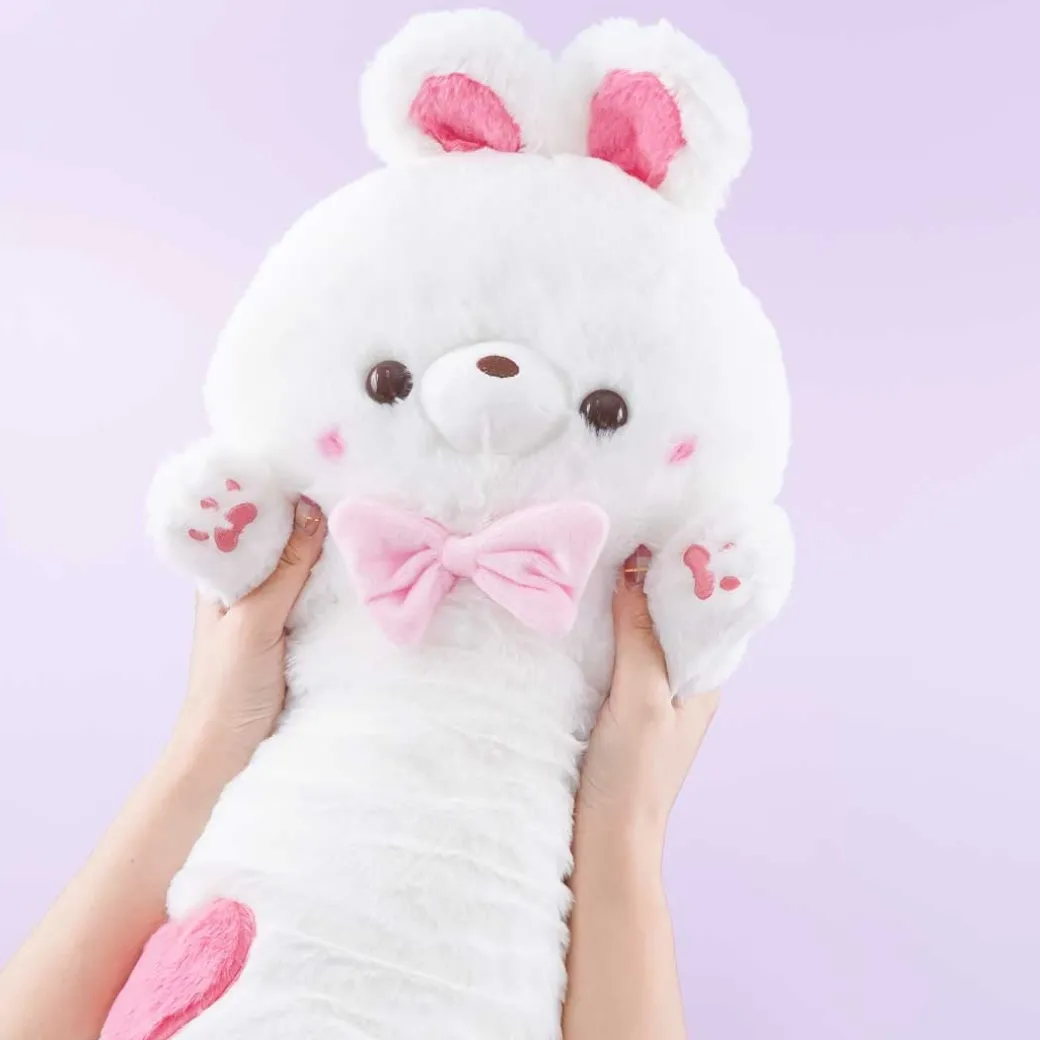 - A super cute and long white bunny cushion