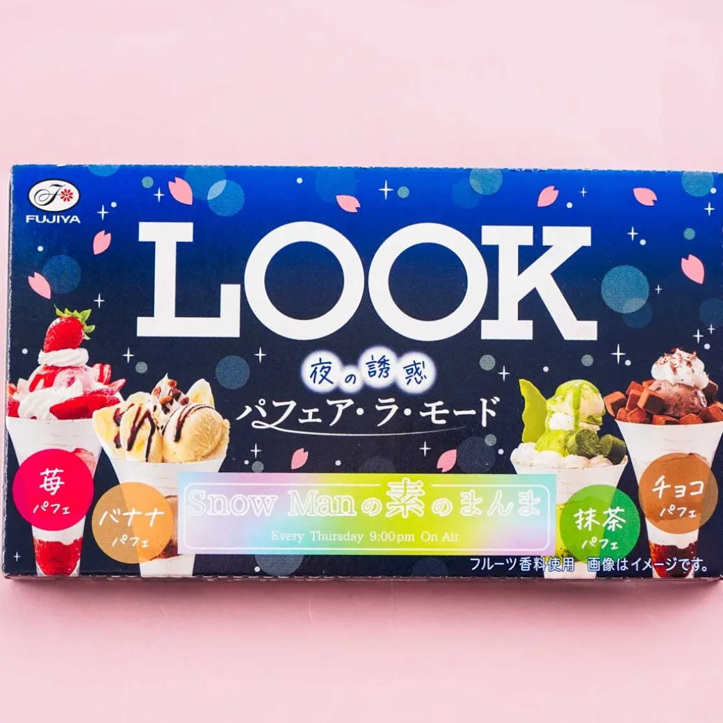 - A box of luxurious chocolate with strawberry parfait, banana parfait, matcha parfait, and chocolate parfait flavors