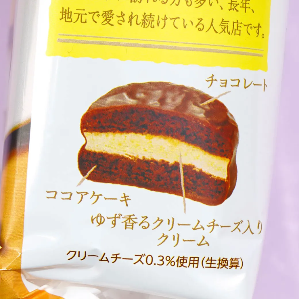This pack of chocolate-coated pie treats is inspired by the baked cheesecake from Cafe Spoon in Kochi City, Japan! Pair it with your favorite cup of coffee. Each piece has a cream center made with yuzu-scented cream cheese.