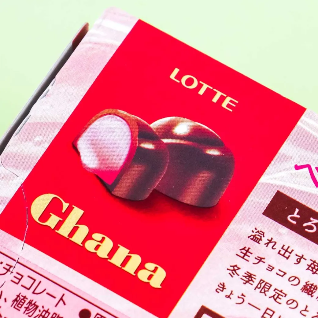 - A box of individually wrapped melty strawberry and raspberry chocolate coated in Ghana milk chocolate