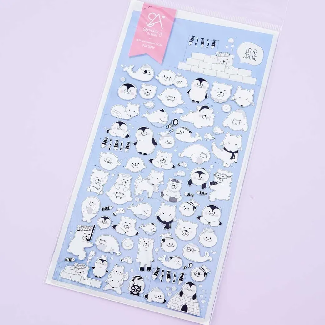 - A kawaii sheet of stickers illustrated with arctic animals
