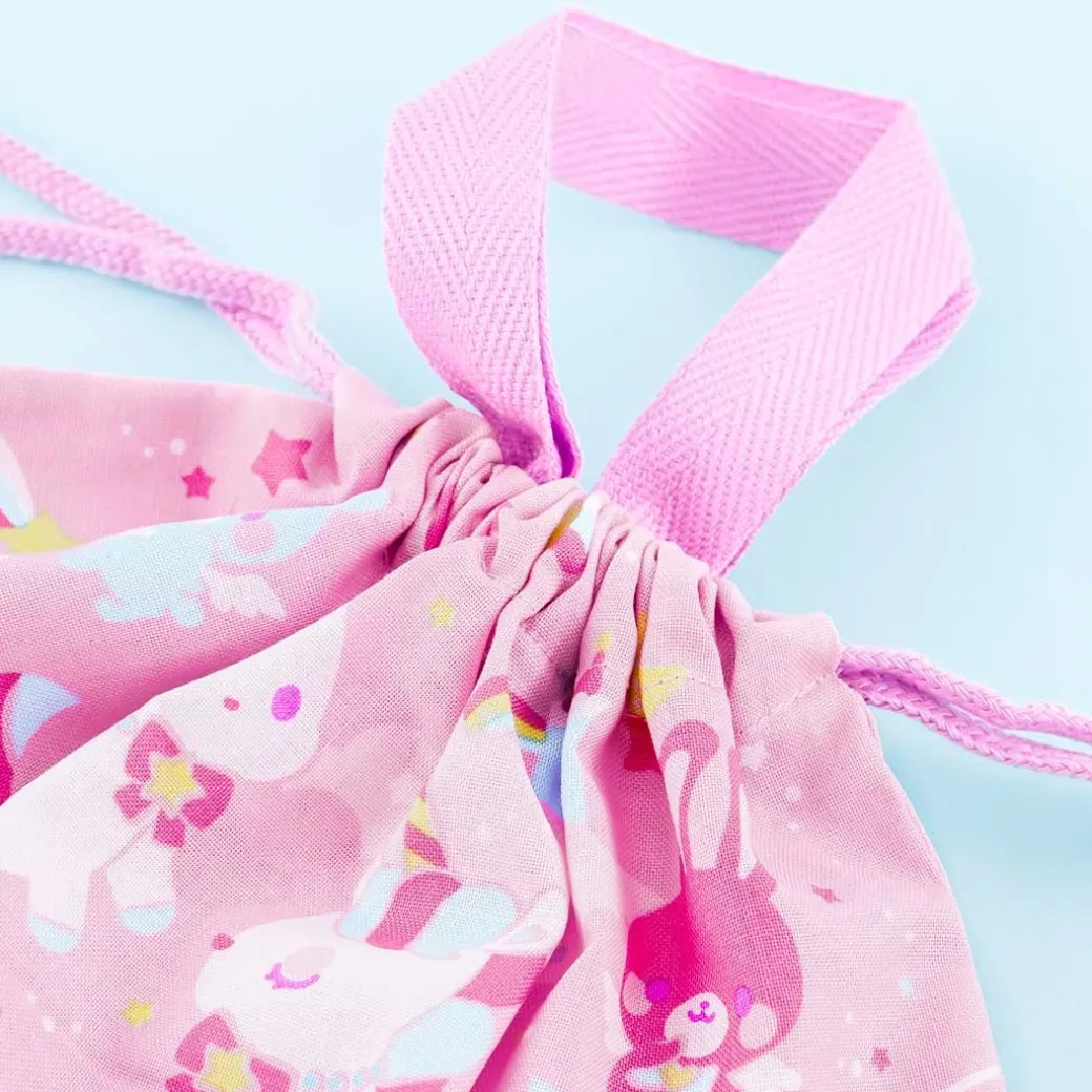 - A super cute drawstring bag meant for holding bento boxes featuring unicorns