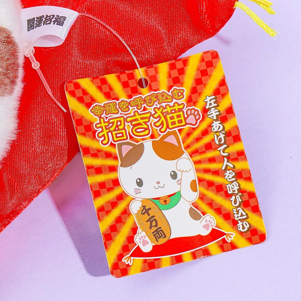 A maneki-neko is a figure of luck in Japan. Add some luck to your work space by decorating it with this cute maneki-neko plushie! It has a cute smile on its face. This medium-sized stuffed toy is the perfect addition to your plush collection.