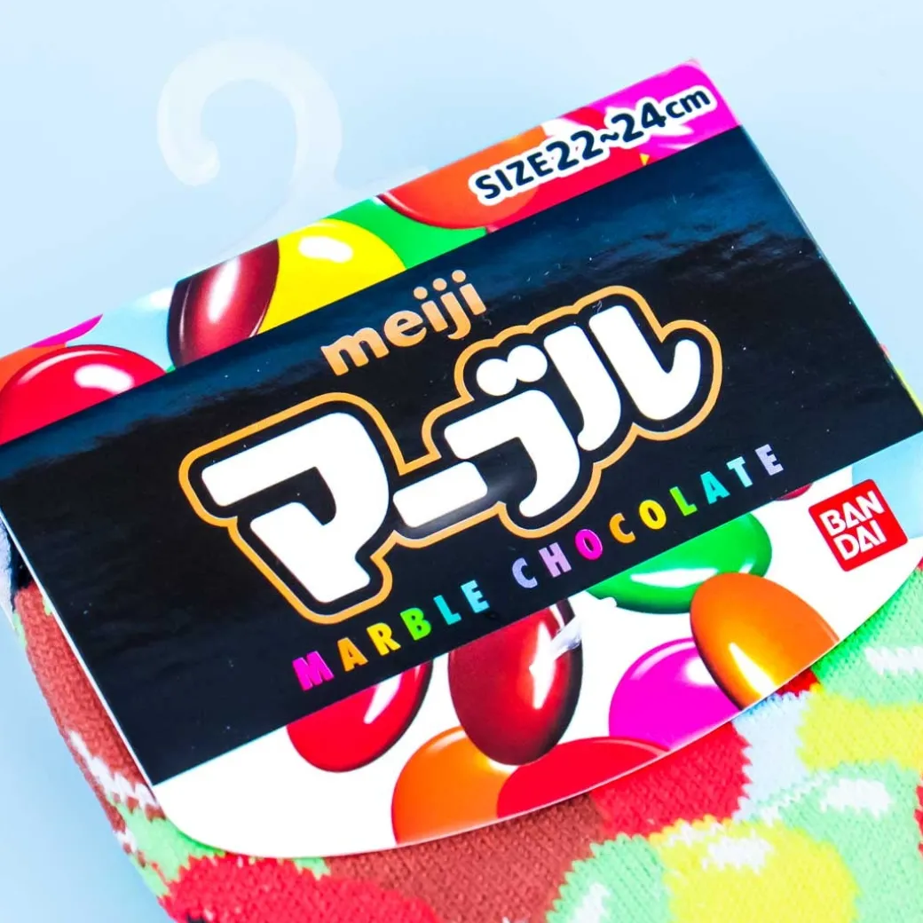 - A pair of socks resembling the Meiji Marble Chocolate packaging