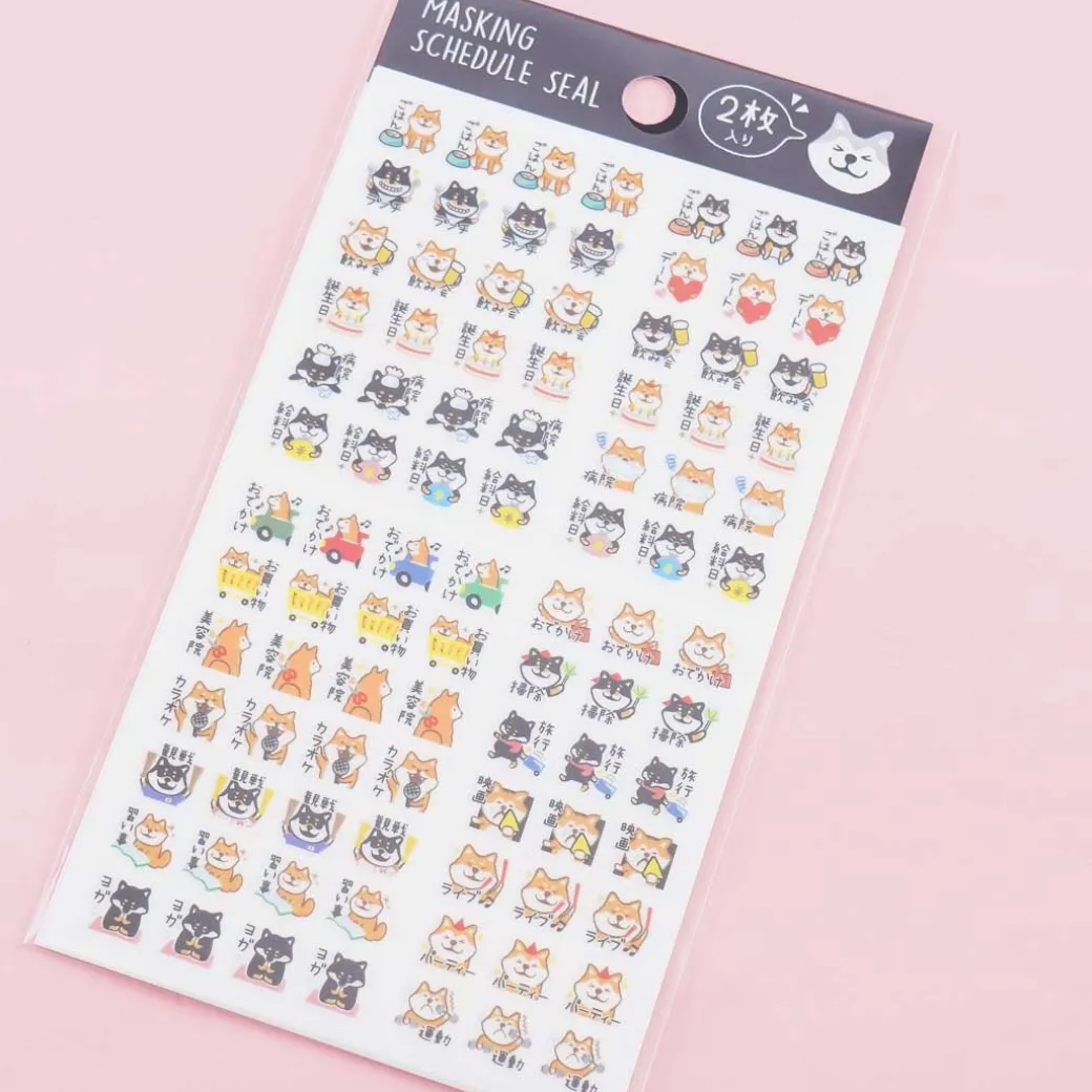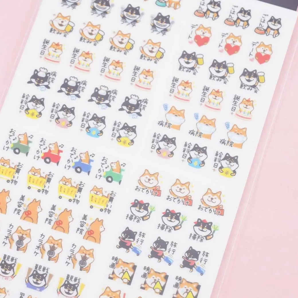 - A cute set of semi-transparent stickers featuring Shiba Inu doing activities
