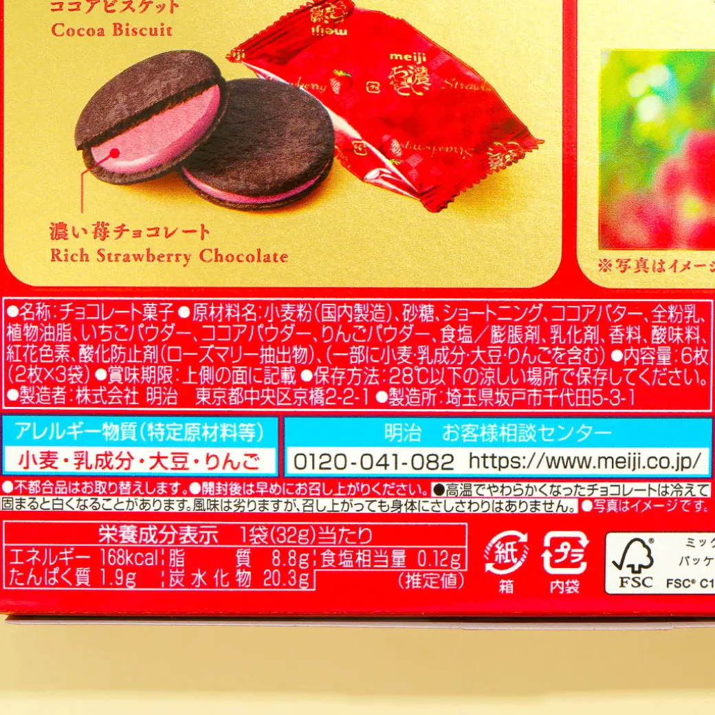 Pair this box of luxurious chocolate cookies with your favorite drink. Each individually wrapped piece has rich strawberry chocolate sandwiched between cocoa biscuits! Share them with your friends