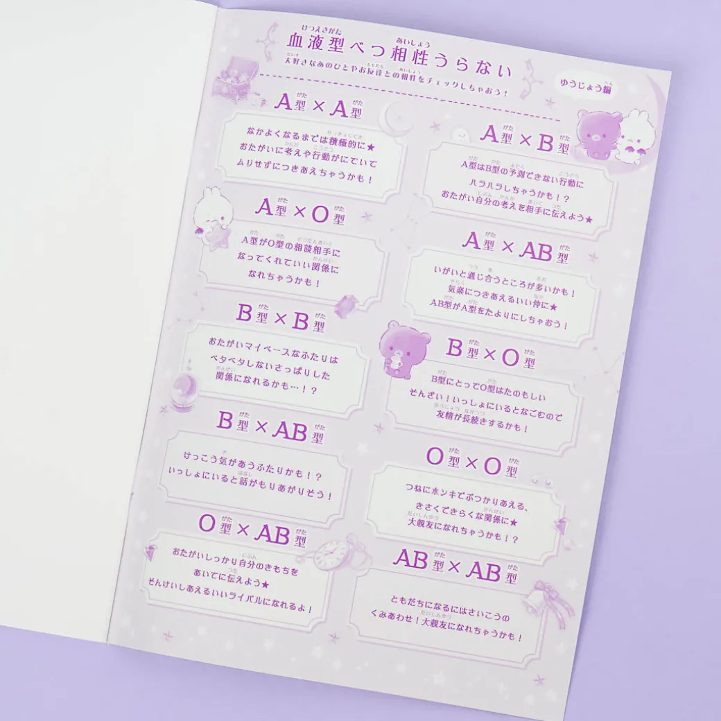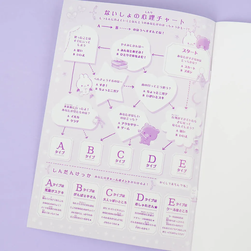 This super kawaii notebook is covered with a cute illustration of Melancholyric characters playing in a moonlit sky, You can use the B5-sized plain pages to draw cute pictures or write sweet poems. This even comes with a personality quiz and chart at the back!