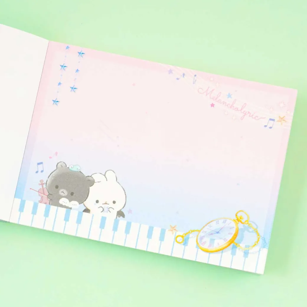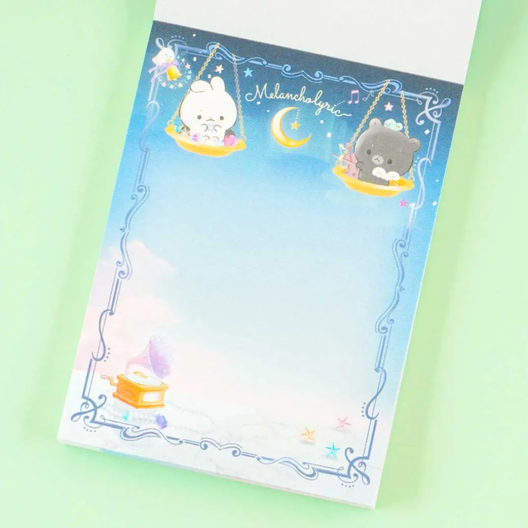 Write your reminders inside this super cute memo pad! It’s decorated with prints of Amo the angel bear and Satan the evil rabbit simply listening to music during nighttime.