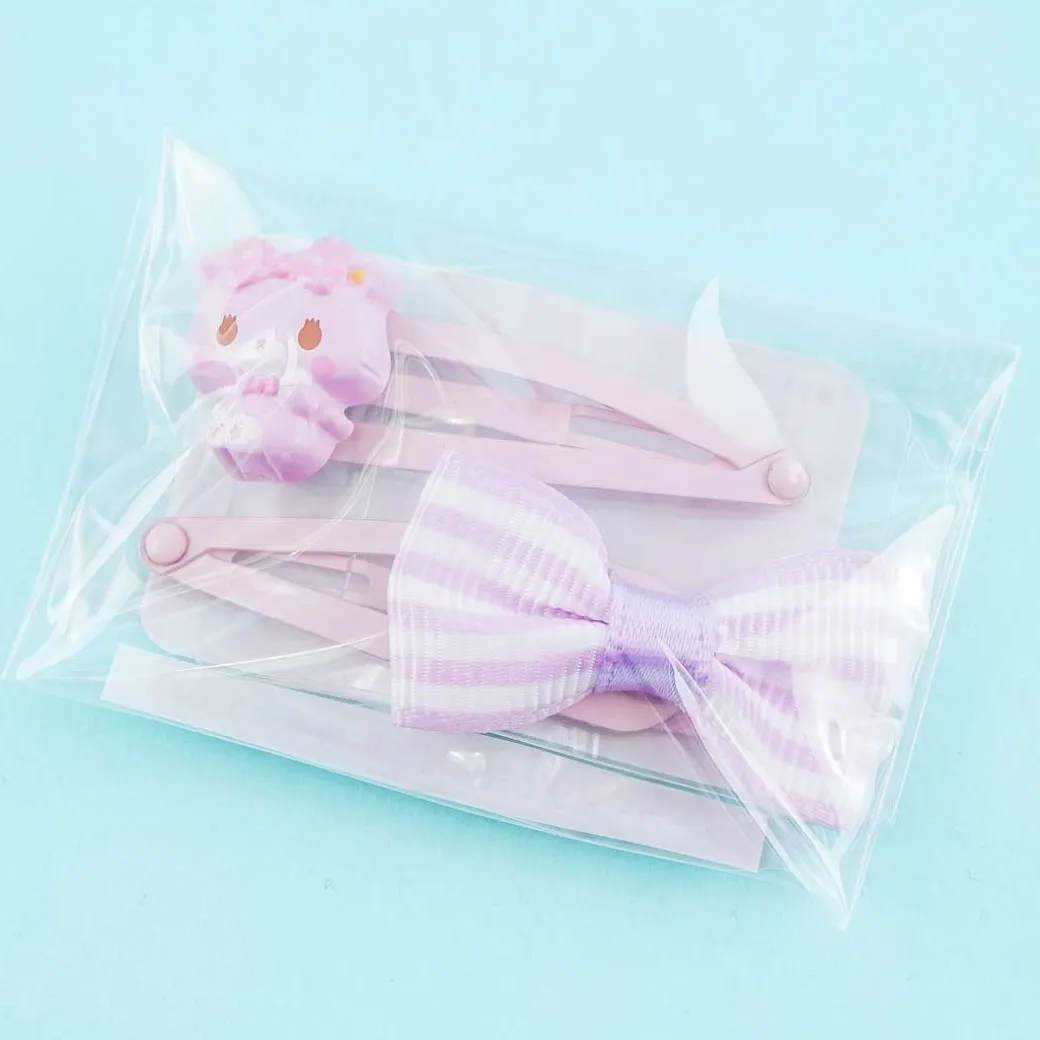 - A set of cute hair clips featuring a Mewkledreamy decor and a ribbon