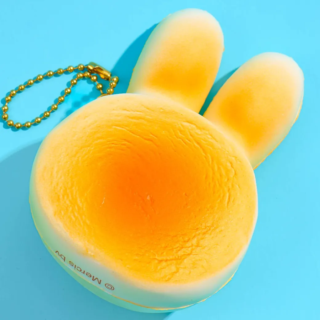 Attach this squishy charm to your favorite backpack for a dose of cuteness! It looks like a bread shaped like Miffy’s head.