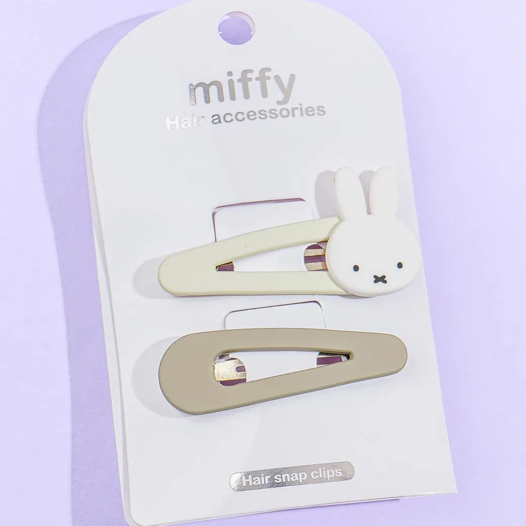 Kawaii-fy your bangs by adding these super cute snap clips! The set has grayscale-colored hair clips and one even has a cute Miffy charm attached to it.