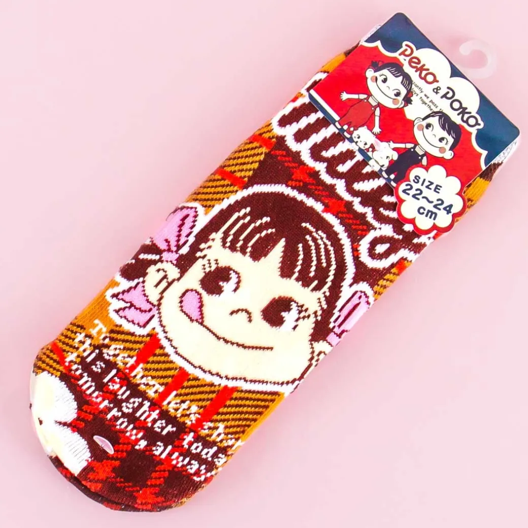 Complete your kawaii outfit with this super cute pair of socks! It’s made of super-soft cotton, has a plaid pattern, and features Milky’s Peko-chan.