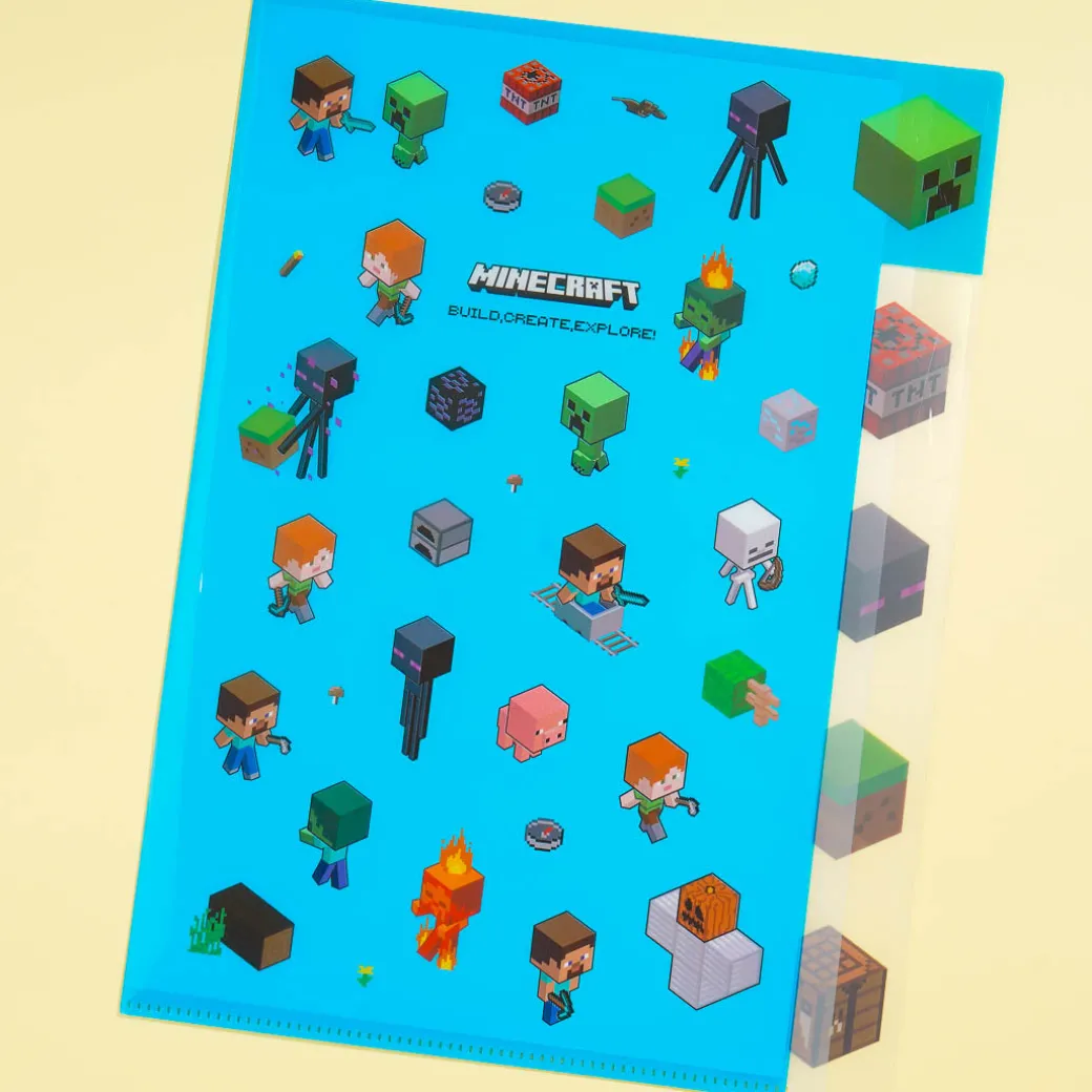 Organize your important documents in this cute index folder covered with illustrations of Minecraft! It comes in A4 size and has five inner pockets with side tabs featuring cubes from the video game.