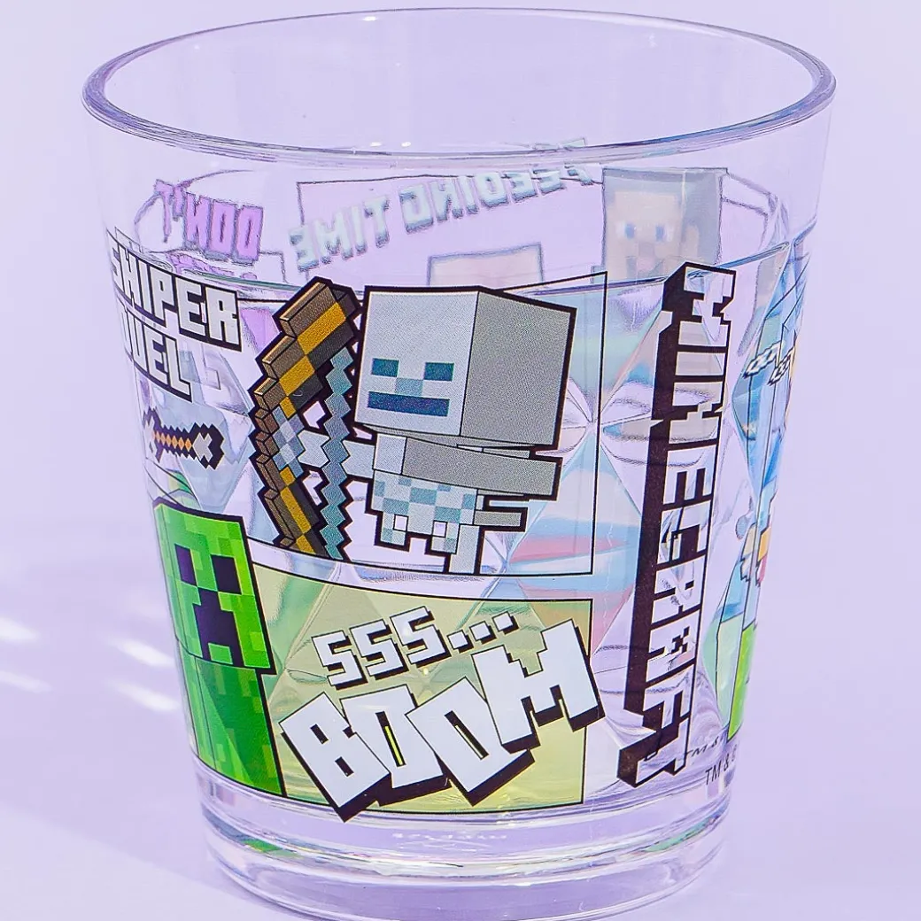 Serve your favorite iced drink using this sparkly and transparent cup! It has colorful illustrations of different Minecraft characters and items.
