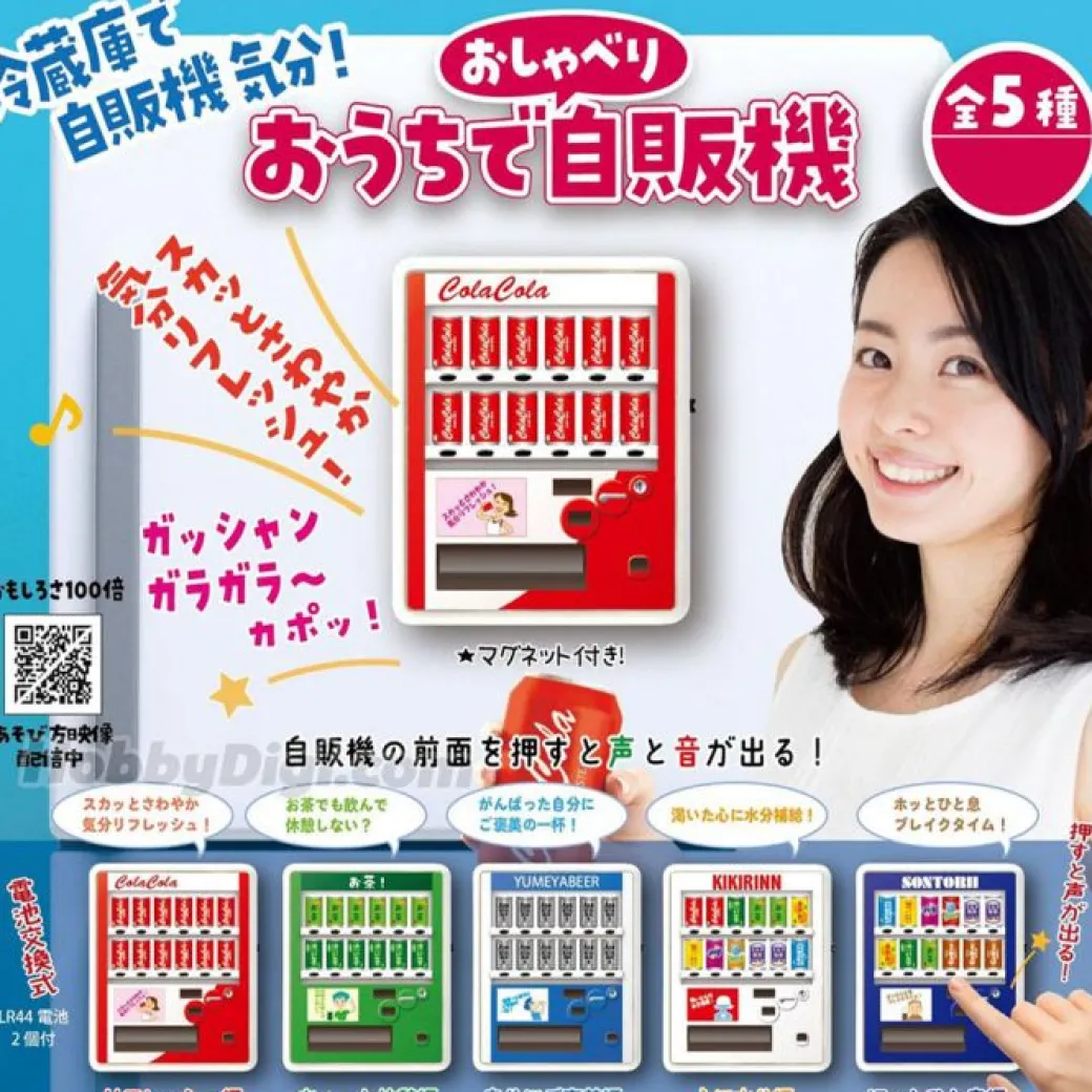 Have fun playing with this mini vending machine featuring different cold drinks! Press the button and the toy will make a sound.