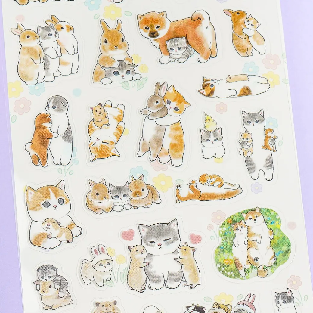 This super kawaii sheet of stickers showcases Mofusand cats from the artist Juno playing together with their animal friends. Use these stickers to decorate your journal! You can also add them to your sticker book.