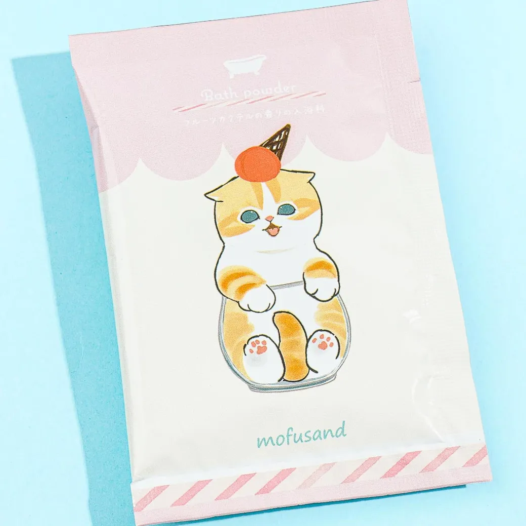 This cute pack of bath salts features a print of a Mofusand cat pretending to be ice cream. Bring it with you when you head to the bath! It has a lovely fruit cocktail scent.