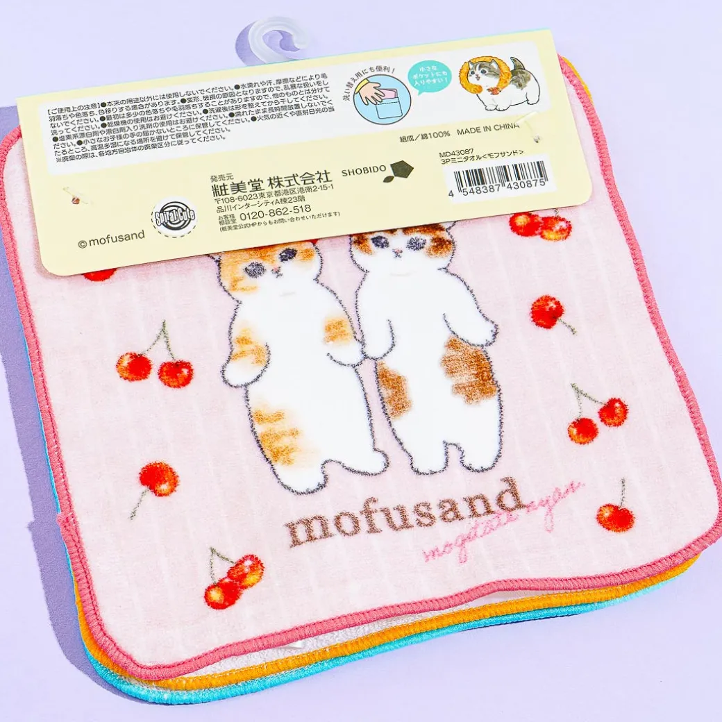 Use these kawaii mini towels to keep sweat off your face or to dry your hands after washing! The set is decorated with super cute prints of Mofusand cat characters having fun and dressing up in various food items like tempura, sandwiches, and cherries.