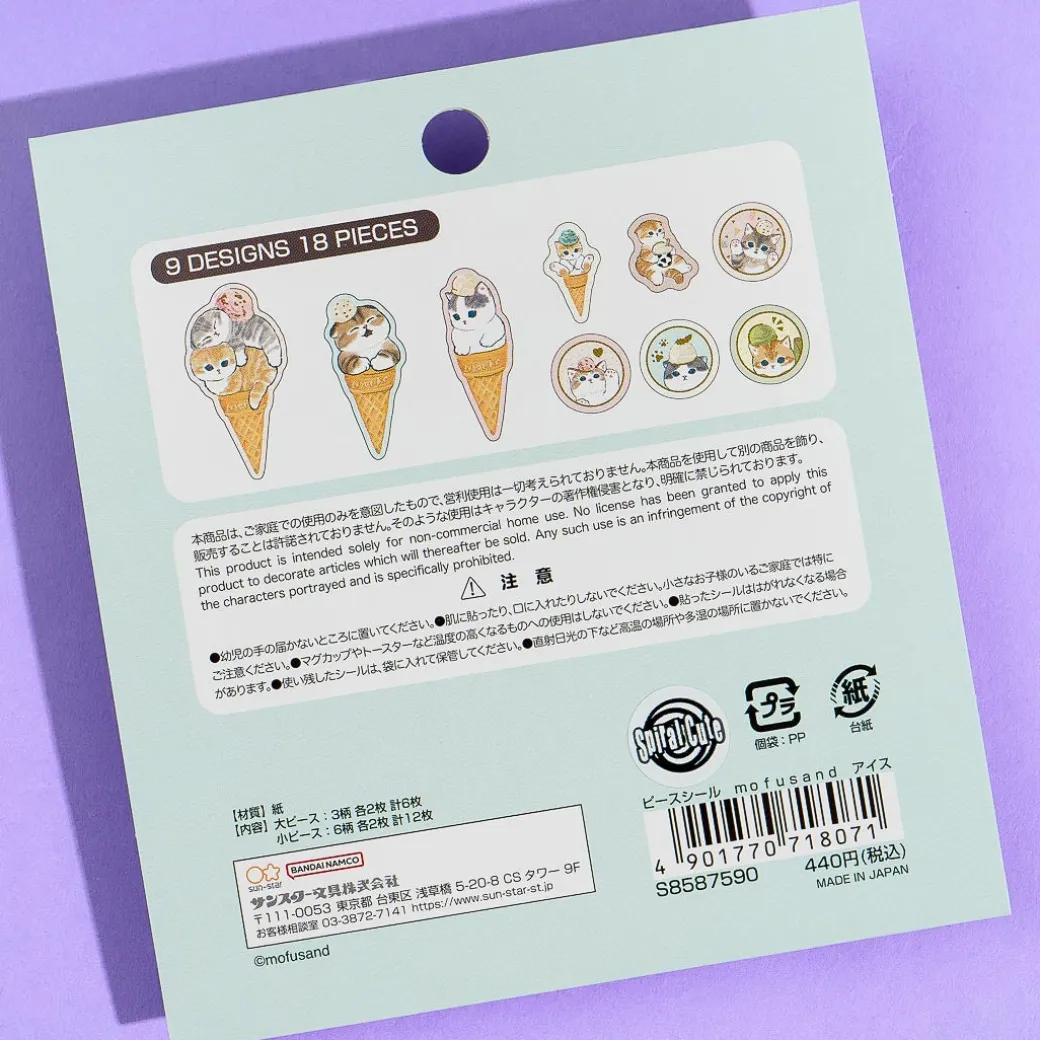 Use these kawaii sticker flakes to decorate your school supplies! It features different-sized prints of Mofusand cats in ice cream cones.