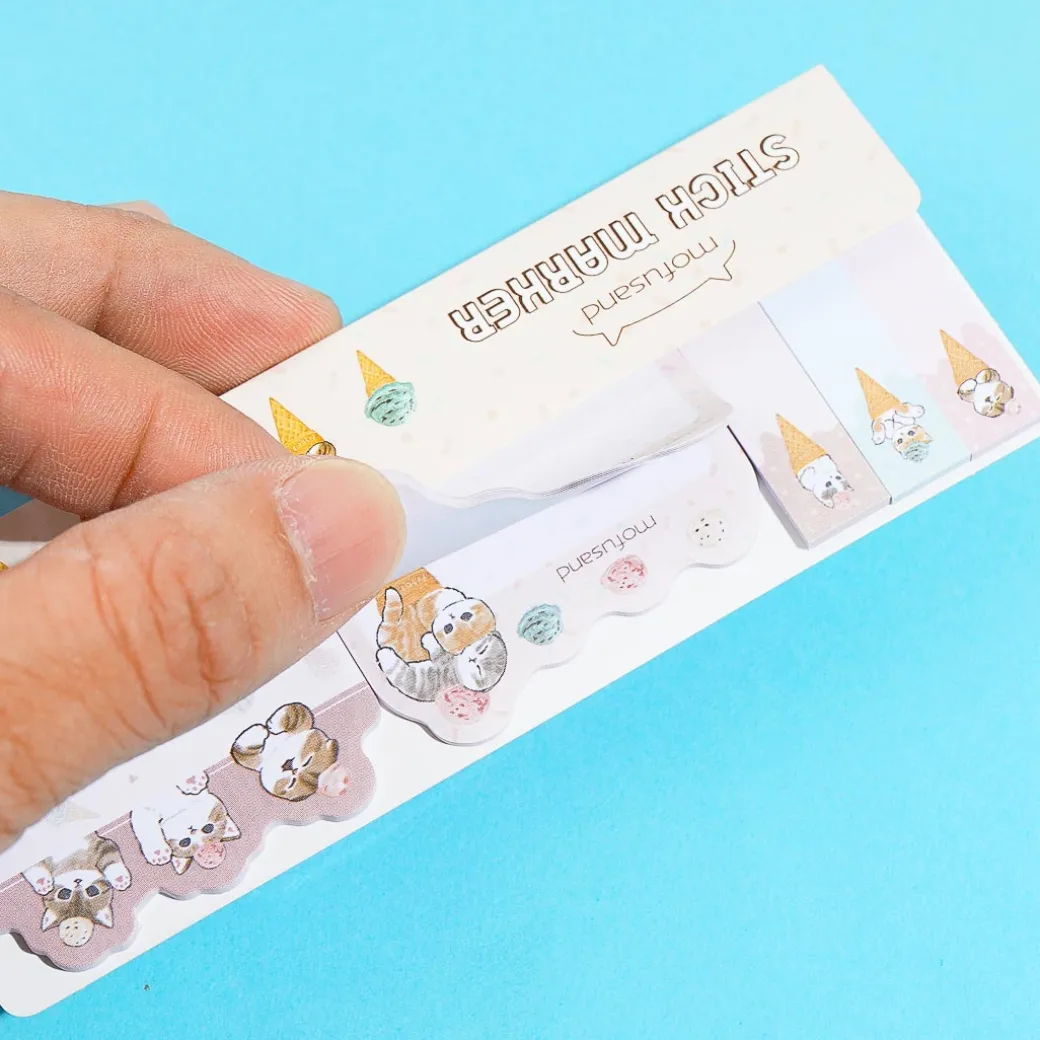 These kawaii sticky notes are perfect for writing reminders to yourself and attaching them to your books or notebooks. They feature cute illustrations of Mofusand cats in ice cream cones with a die-cut top part.