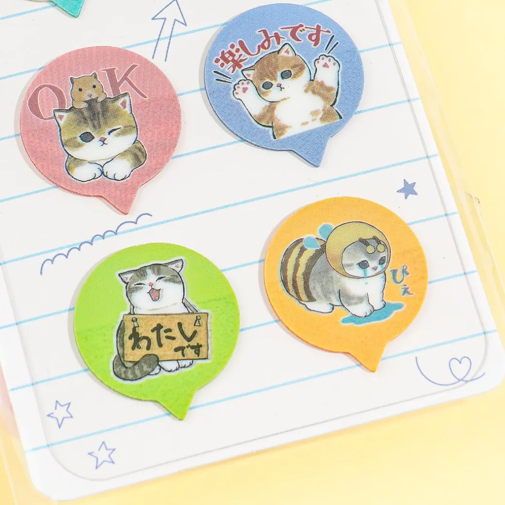 Mark your favorite book pages using these kawaii sticky tabs! Each die-cut piece is shaped like a speech bubble and has a super cute illustration of Mofusand characters with different reactions.