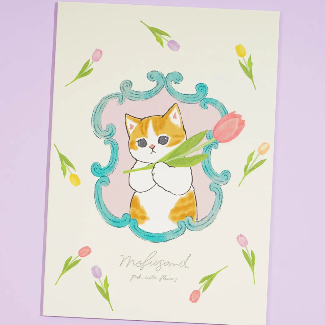 Have fun doodling in this super kawaii A5 notebook. It features prints of a Mofusand cat playing with tulips! Use it to practice sketching and drawing.