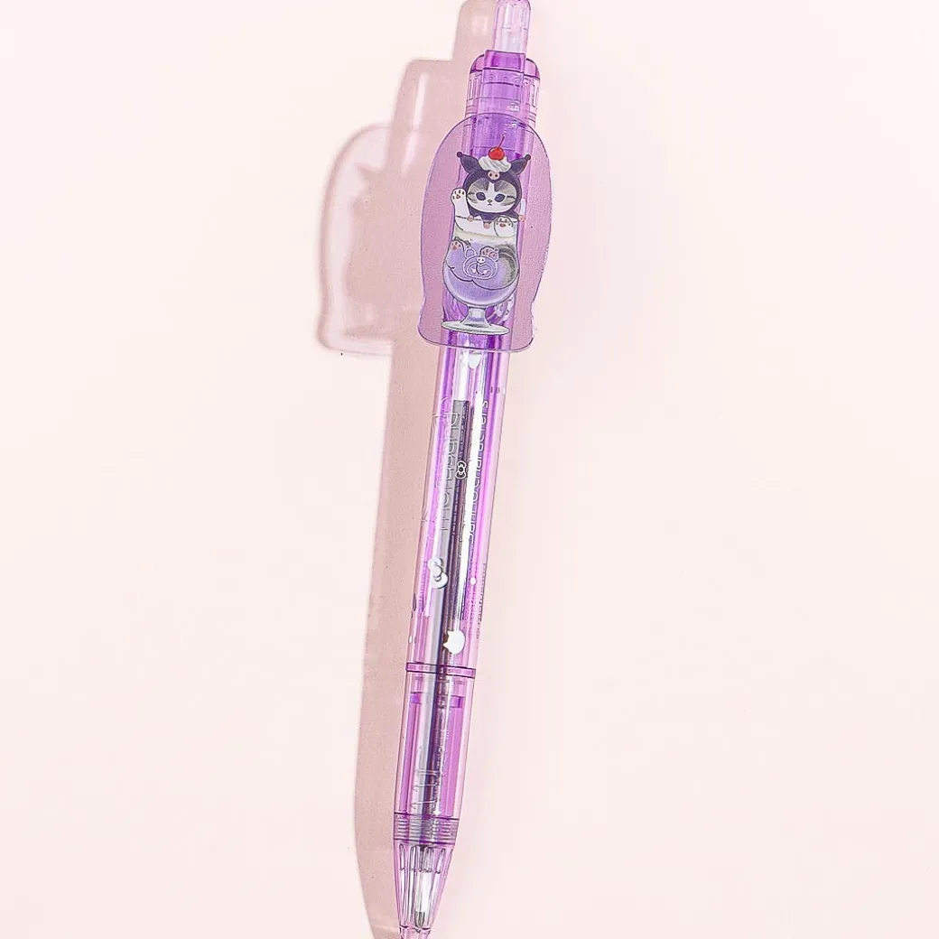 This super cute ballpoint pen is the perfect addition to your kawaii stationery collection! It’s decorated with a semi-transparent charm featuring an illustration of a Mofusand cat wearing a Kuromi headgear.