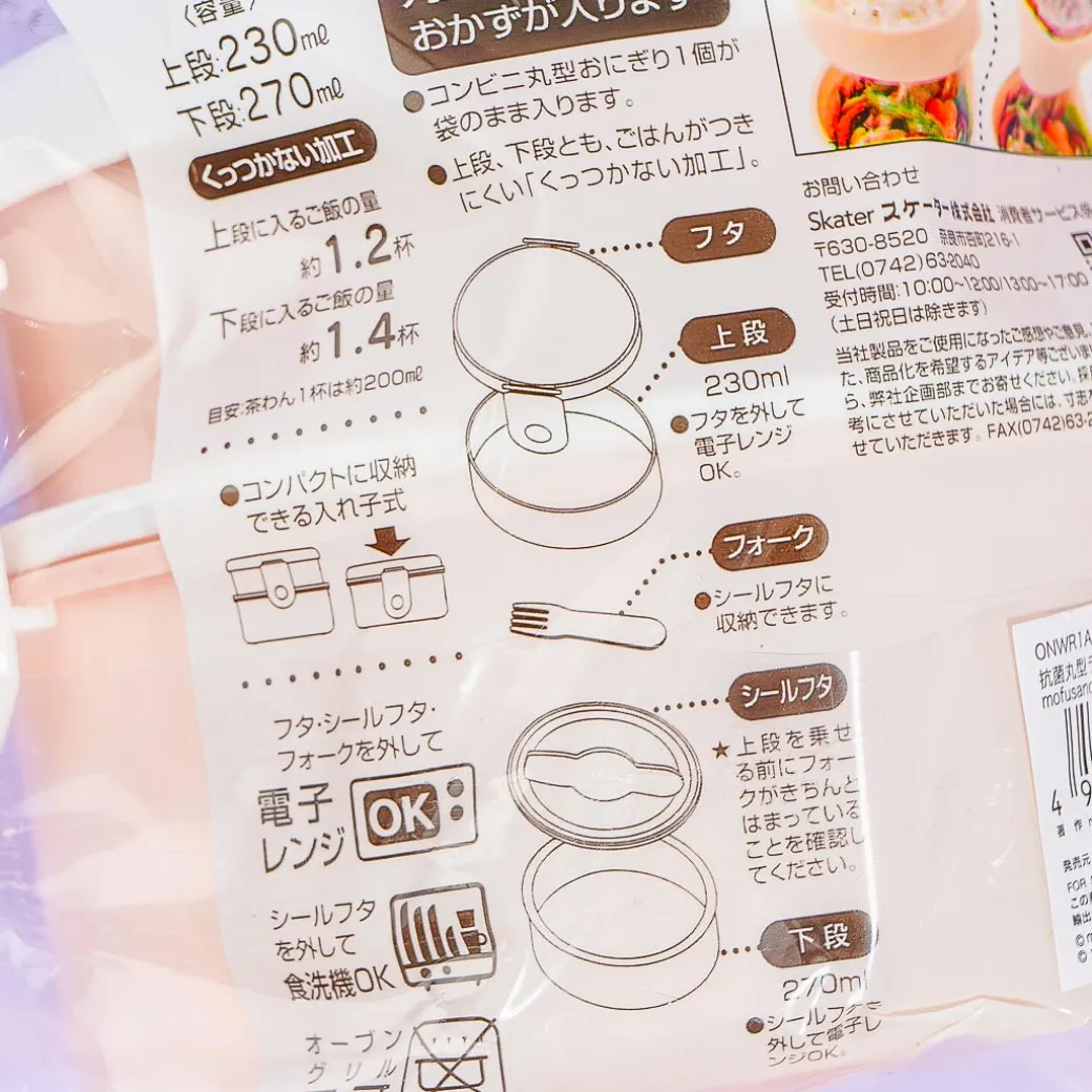 Bring your favorite meals for lunch using this super kawaii lunch box. It’s lid showcases prints of Mofusand cats dressed up as cuties from Sanrio. This lunch box has two different layers for you to use. Each layer has a non-stick surface that prevents rice from clinging to them. It has a middle layer with a fork. Remember to remove the lid, fork, and inner lid before microwaving meals!