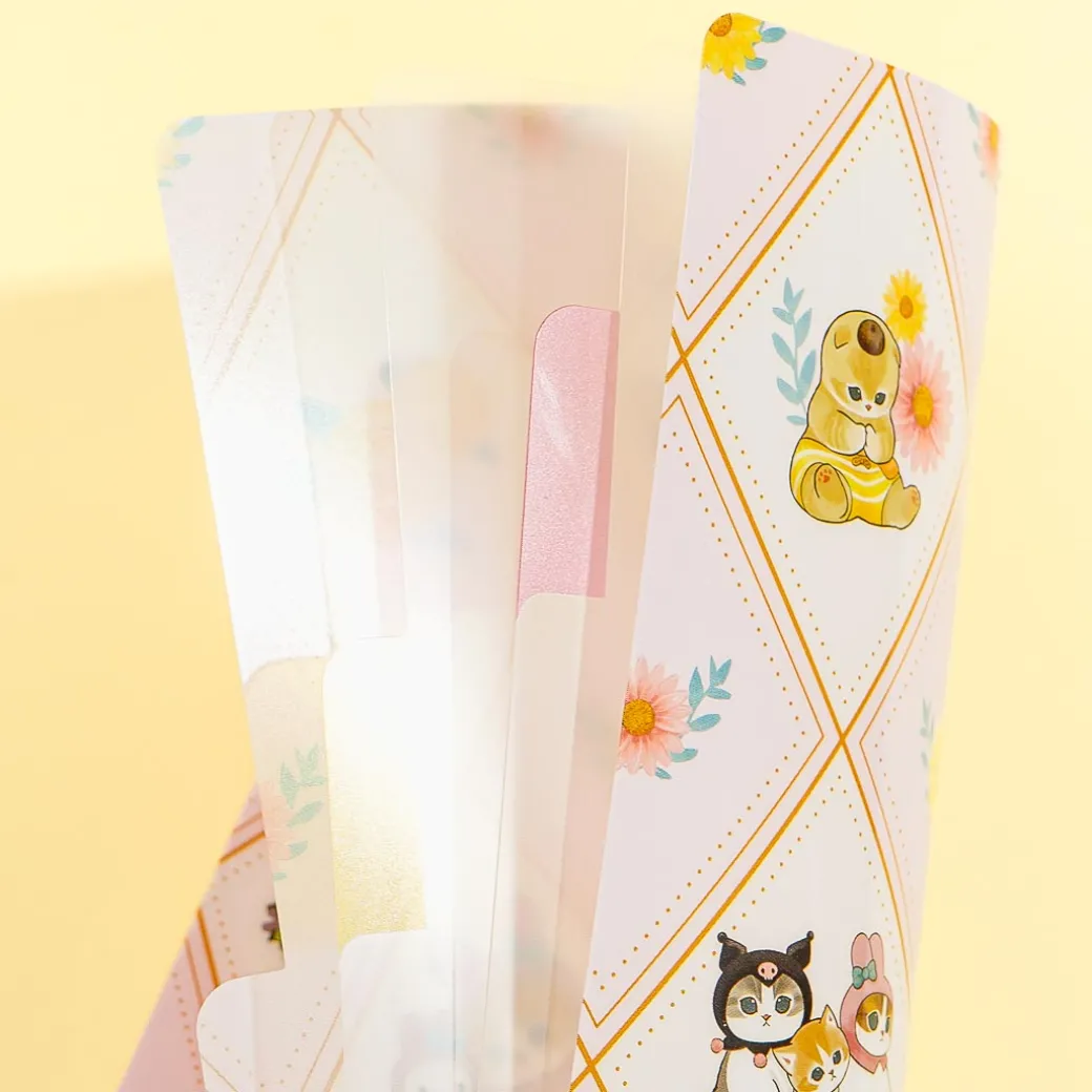 Organize your important documents inside this kawaii index folder! It’s decorated with super cute prints of the Mofusand cat characters holding spring flowers while dressed as their favorite Sanrio Characters! The clear file also has three separate pockets.