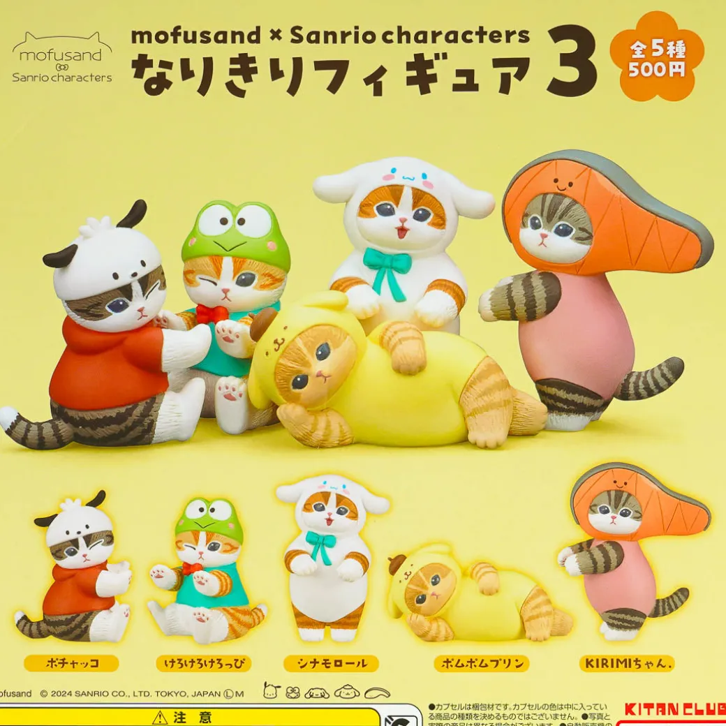 This Mofusand figure is all dressed up as a Sanrio cutie! It comes from the Mofusand x Sanrio Characters Cosplay gachapon collection, which showcases Mofusand cats wearing Sanrio onesies. Set this figure on your desk!