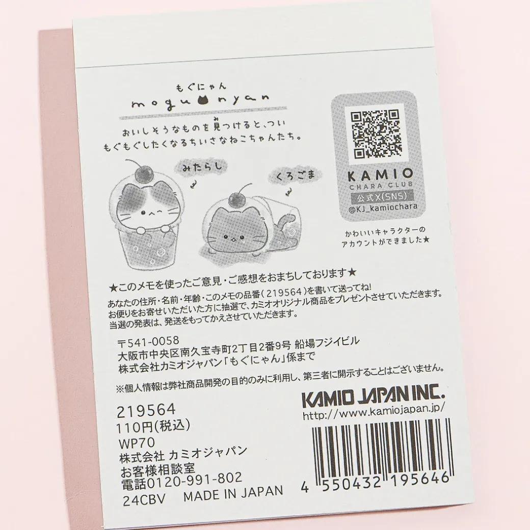 Write important reminders using this handy mini notepad! The sheets are illustrated with kawaii prints of the Mogu Nyan characters swimming in a giant glass of cream soda. You can also use this memo pad to send short letters to your besties!