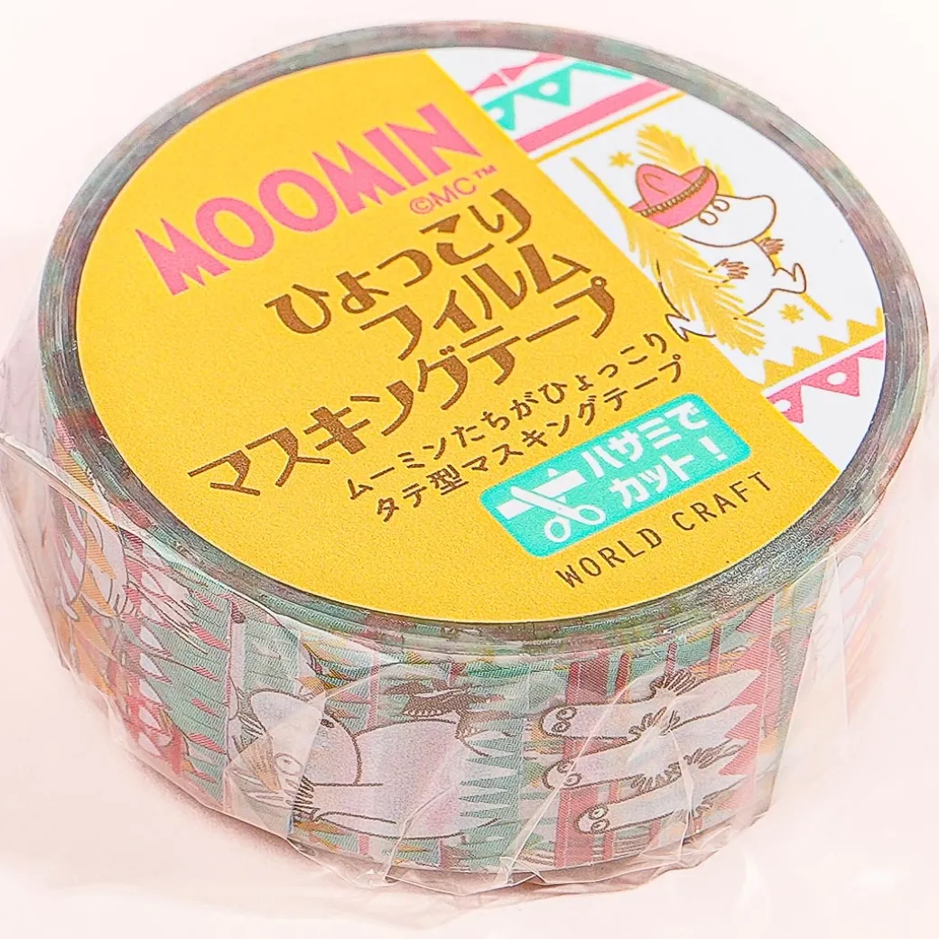 Add a dose of cuteness to your plain book covers by decorating them using this clear masking tape! This roll has kawaii vertical illustrations of Moomin characters and bright-colored patterns.