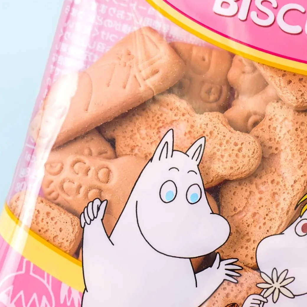 - A pak of raspberry-flavored biscuits illustrated with Moominvalley characters