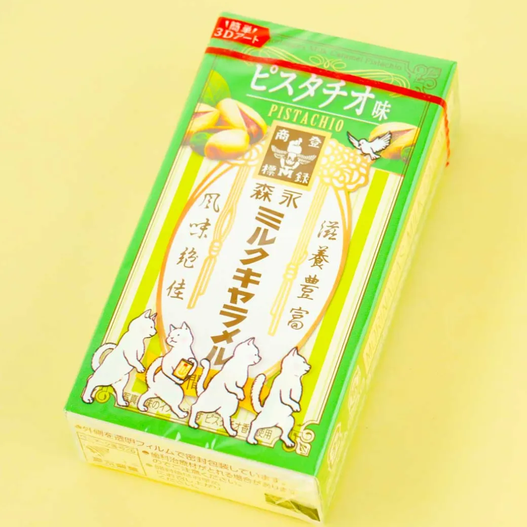 - A box of pistachio-flavored milk caramel treats