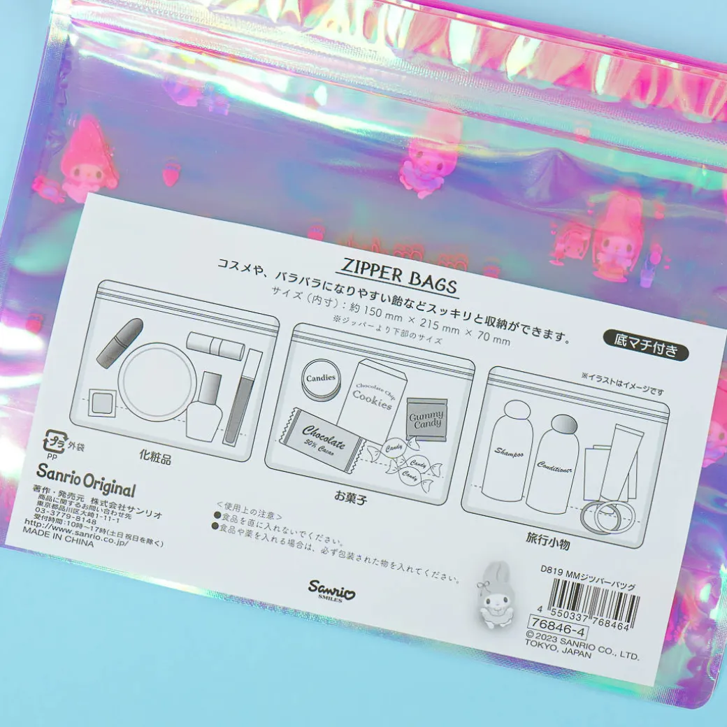 Store your accessories, cosmetics, and even snacks in these resealable bags when you travel! These zip bags are covered with cute My Melody prints and feature a holographic finish that’s inspired by aurora borealis.