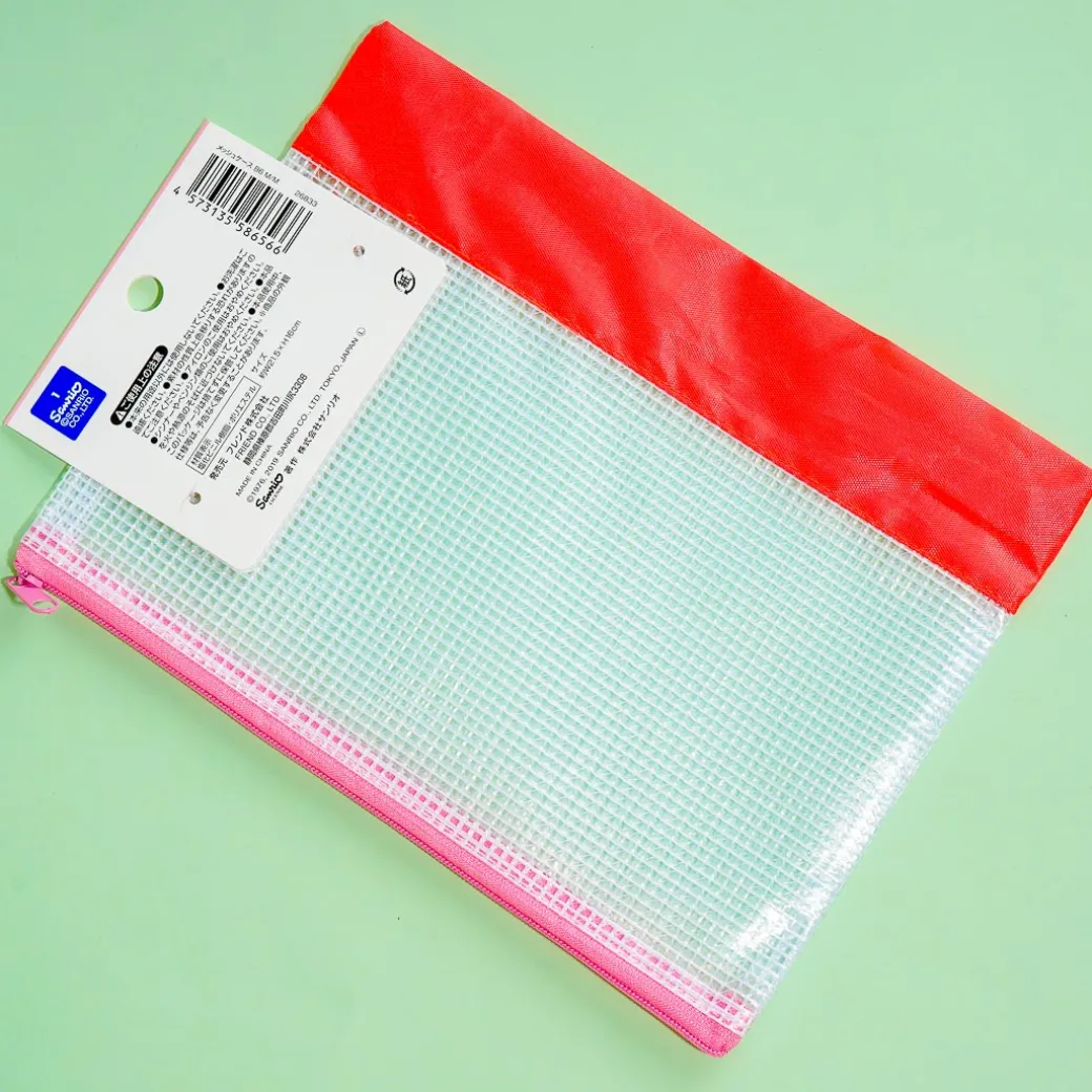 This super cute zippered B6 mesh pouch is illustrated with prints of My Melody. You can use it to store your pencils, documents, and other items. It’s semi-transparent so you can see your things inside!