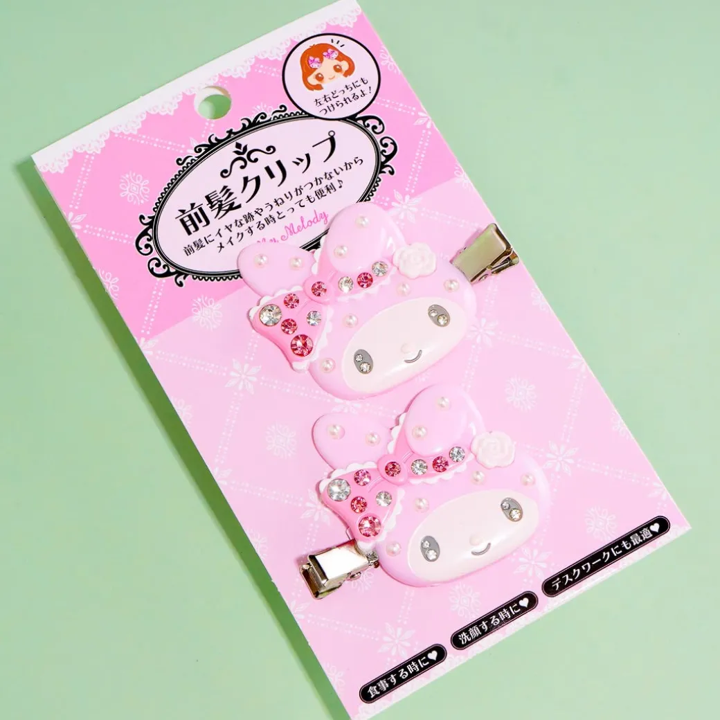 These kawaii clips have pink or sakura-edition My Melody face charms with bows that are studded with jewels! Wear this super cute pair to keep your bangs away from your face while applying serum.