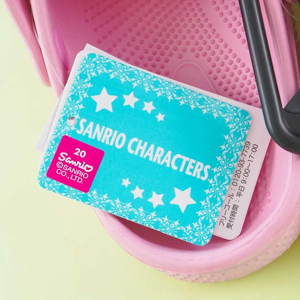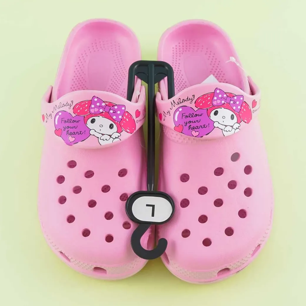 - A kawaii pair of large-sized clog sandals featuring prints of My Melody