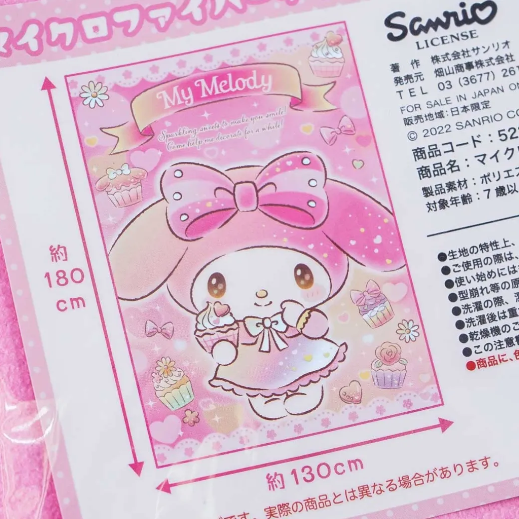 - A super cute smooth microfiber blanket showcasing My Melody and cupcakes