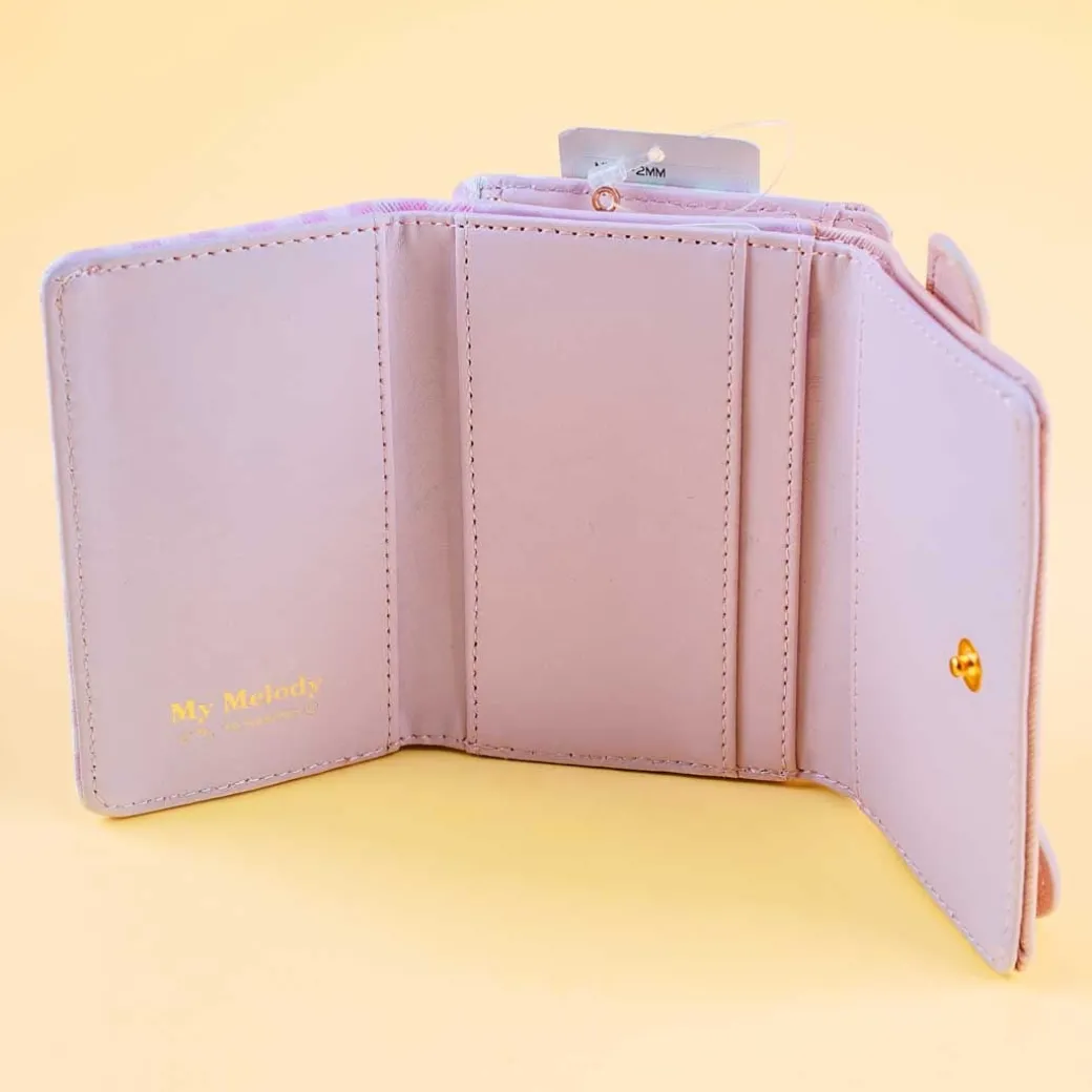 - A super cute trifold wallet with a My Melody embroidered face design