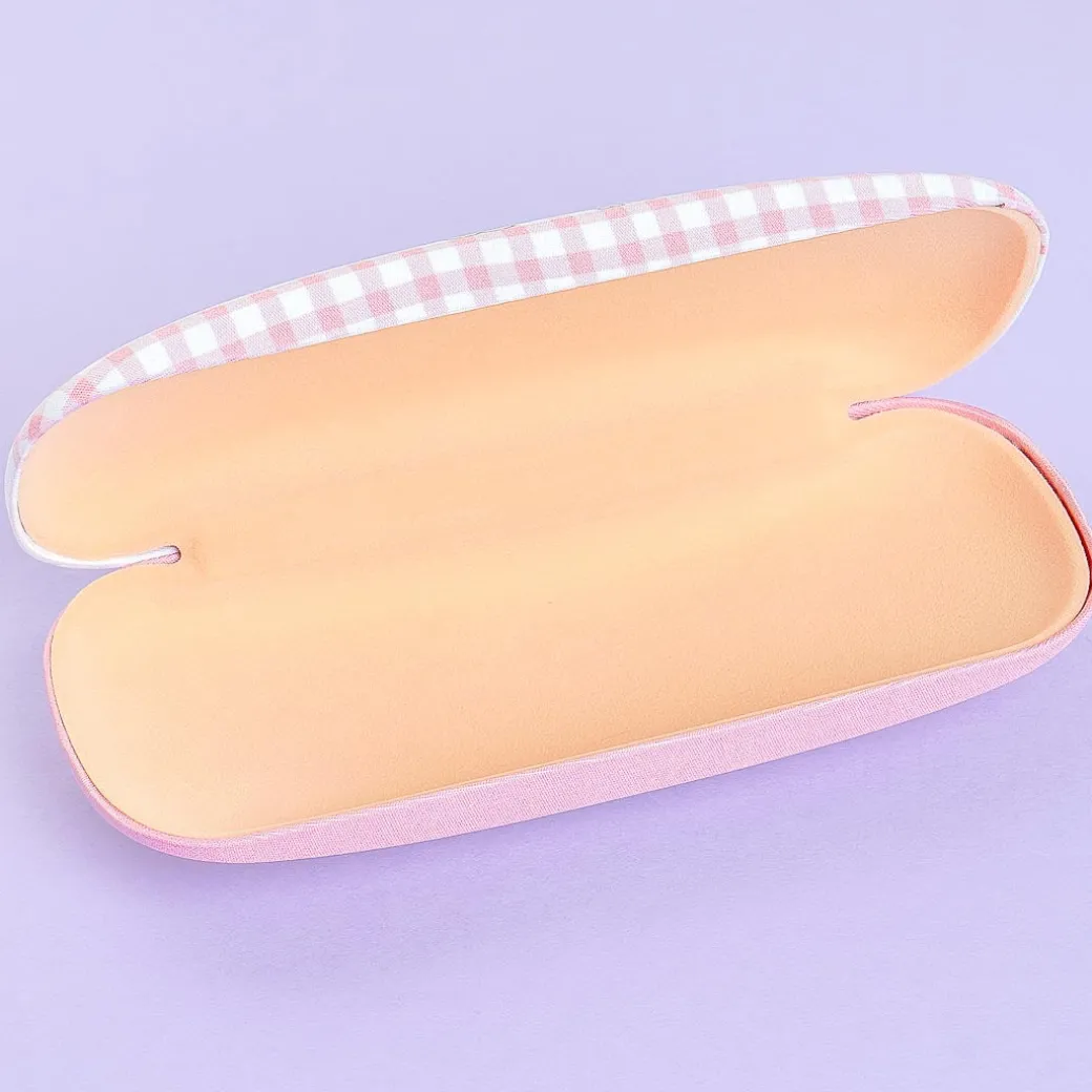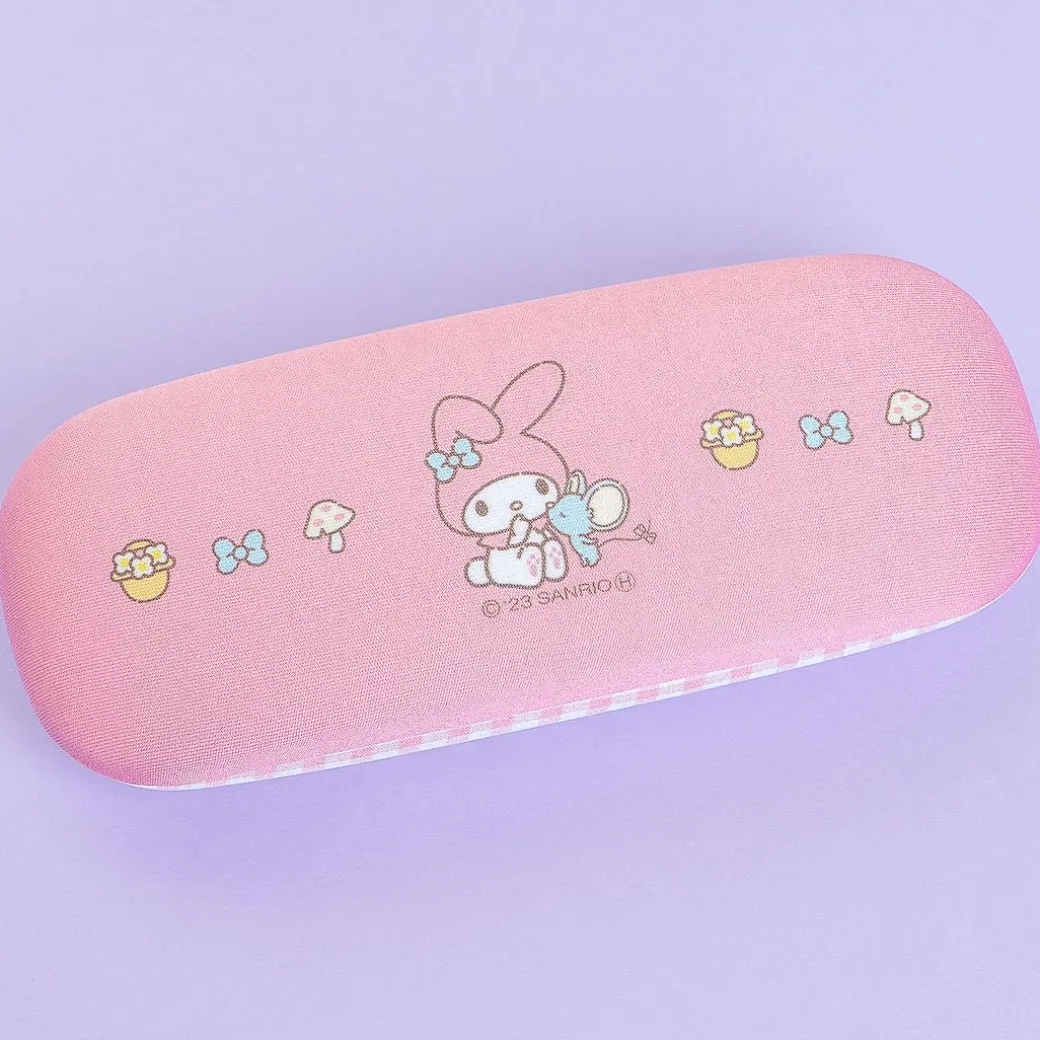 This gingham-printed hard case will keep your eyeglasses safe! It showcases a back-to-back design with cute prints of My Melody and her friend Flat. It comes with a cloth to keep your specs clean and smudge-free!