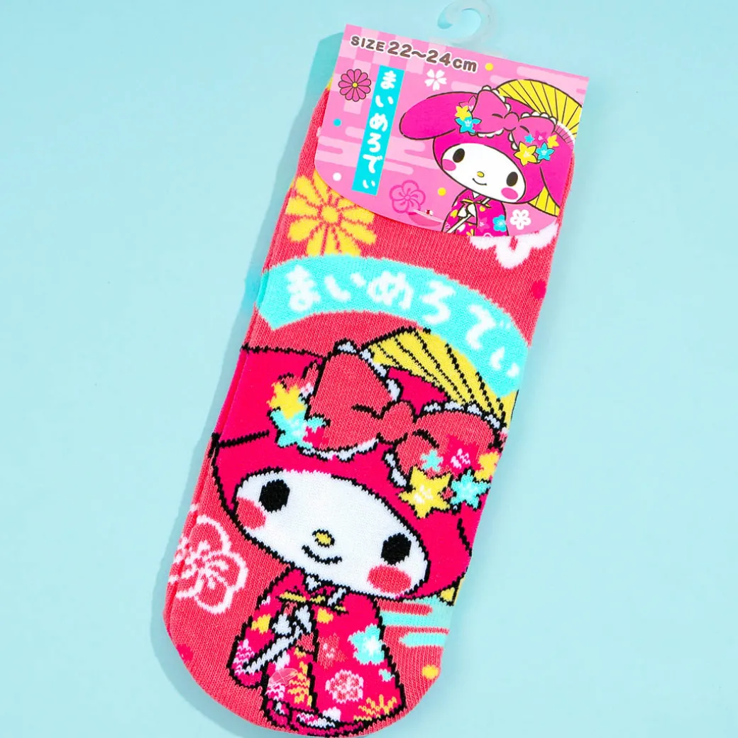 Keep your feet warm and comfortable using these kawaii socks! They feature prints of My Melody wearing a cute floral kimono.