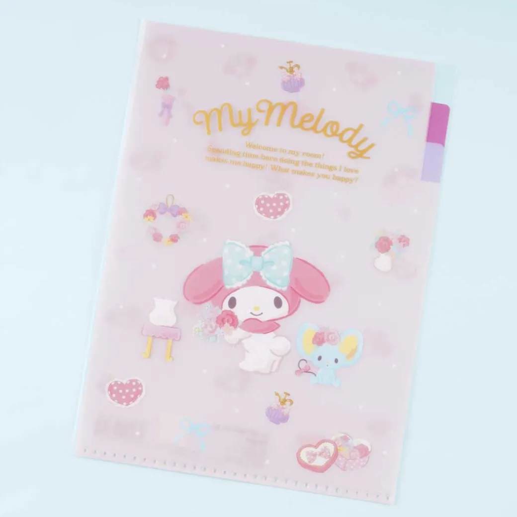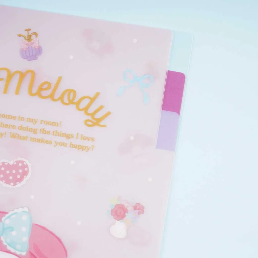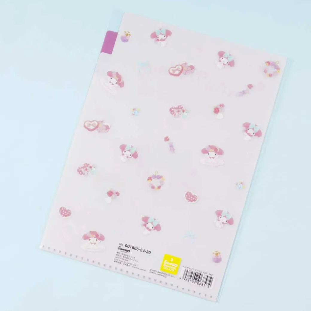 - A kawaii A5 index folder decorated with prints of My Melody and flowers