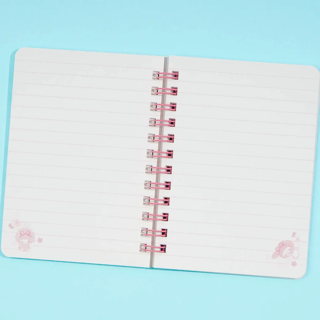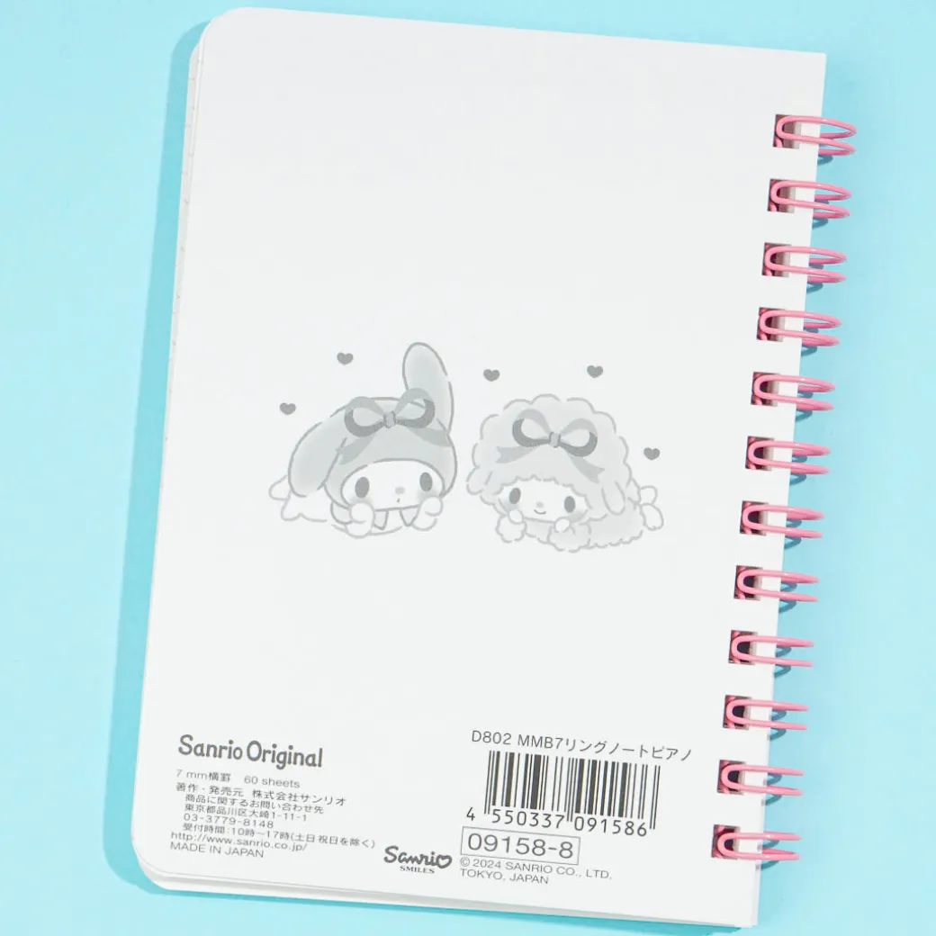 Have fun writing down notes on this kawaii B7 double-ring notebook. It features prints of My Melody hanging out with her bestie My Sweet Piano surrounded by flowers! This cute notebook has 7mm ruled lines so you can write properly.