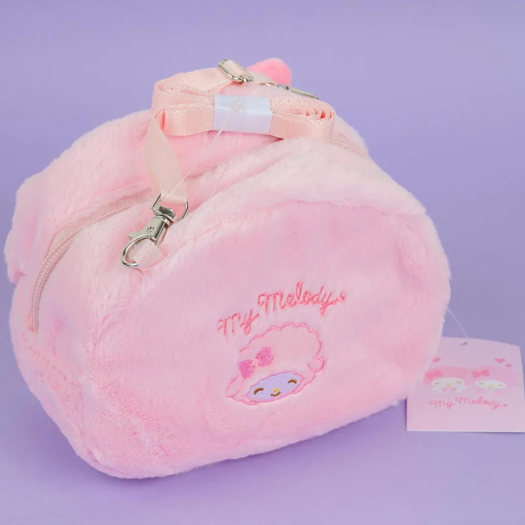 This kawaii zippered sling bag features My Melody’s face with pop-out ears and a ribbon! It has an embroidered illustration of My Sweet Pianos at the back along with Kuromi’s name. The bag is perfect for carrying around your thing while out and about!