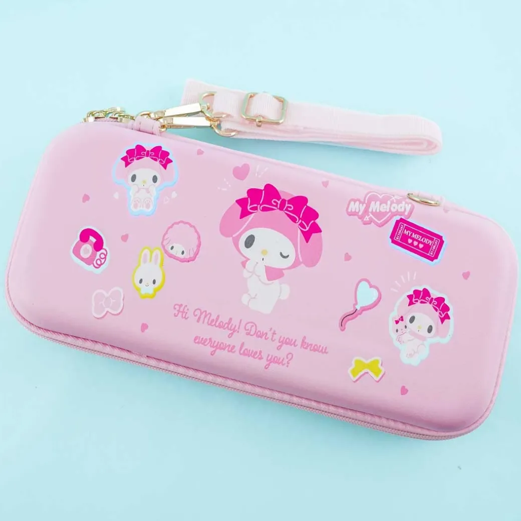 - A cute gaming console hard pouch illustrated with My Melody, her friends, and kawaii things